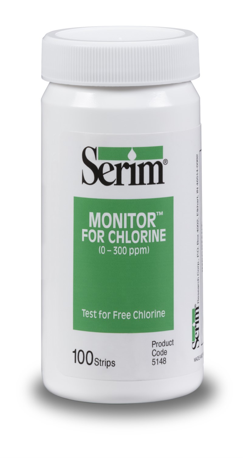 Serim® Monitor™ for Chlorine Potency strips measure free chlorine. The test gives a semi-quantitative indication that chlorine-based sanitizers have the appropriate concentration of free chlorine required for use in sanitizing food and food processing equipment.