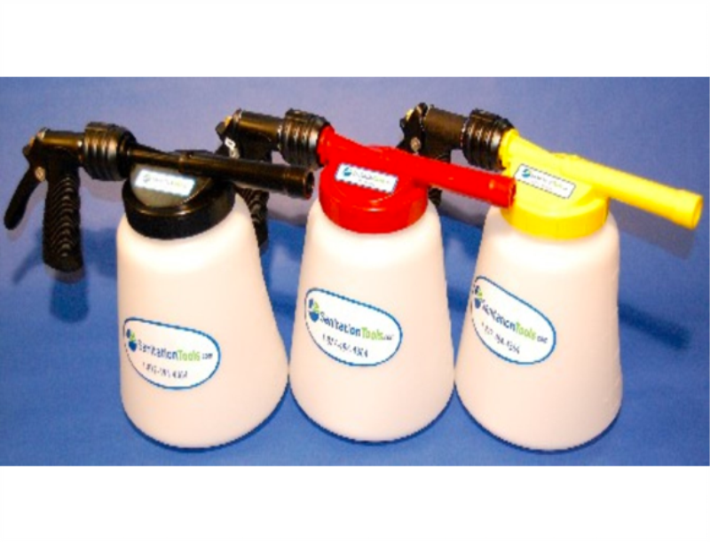 Three Pack of Hydrofoamer 481's with Red, Black, and Yellow Lids designed to provide a multiple color-coded identification approach to managing your cleaning chemicals. SanitationTools.com has this exclusive tri-colored Hydrofoamer 481 package for those facilities that need to differentiate between the various foam cleaners being used. The standard black lid Hydrofoamer 481 has been a mainstay in the sanitation industry. The Red and Yellow Lid Hydrofoamer 481’s are identical to the black lid unit except for the color. Enjoy all of the benefits of the Hydrofoamer 481 with the ability to properly identify chemicals by the color of the lid. For example, if you use a chlorinated foaming detergent, an acidic cleaner, and an alkaline cleaner in your facility, use the yellow lid Hydrofoamer for the chlorinated detergent, the red lid Hydrofoamer 481 for the acidic cleaner, and the black lid Hydrofoamer 481 with the alkaline cleaner.